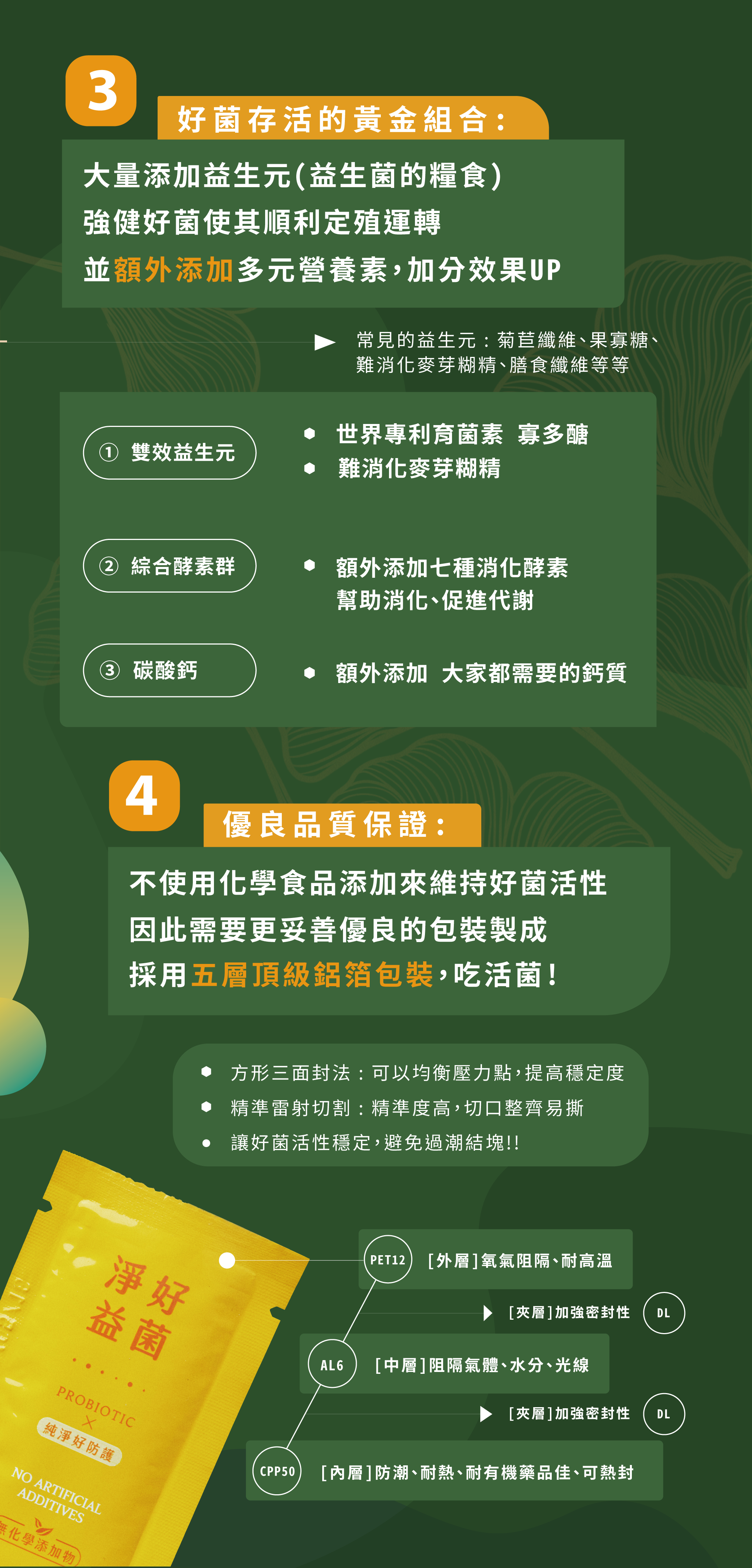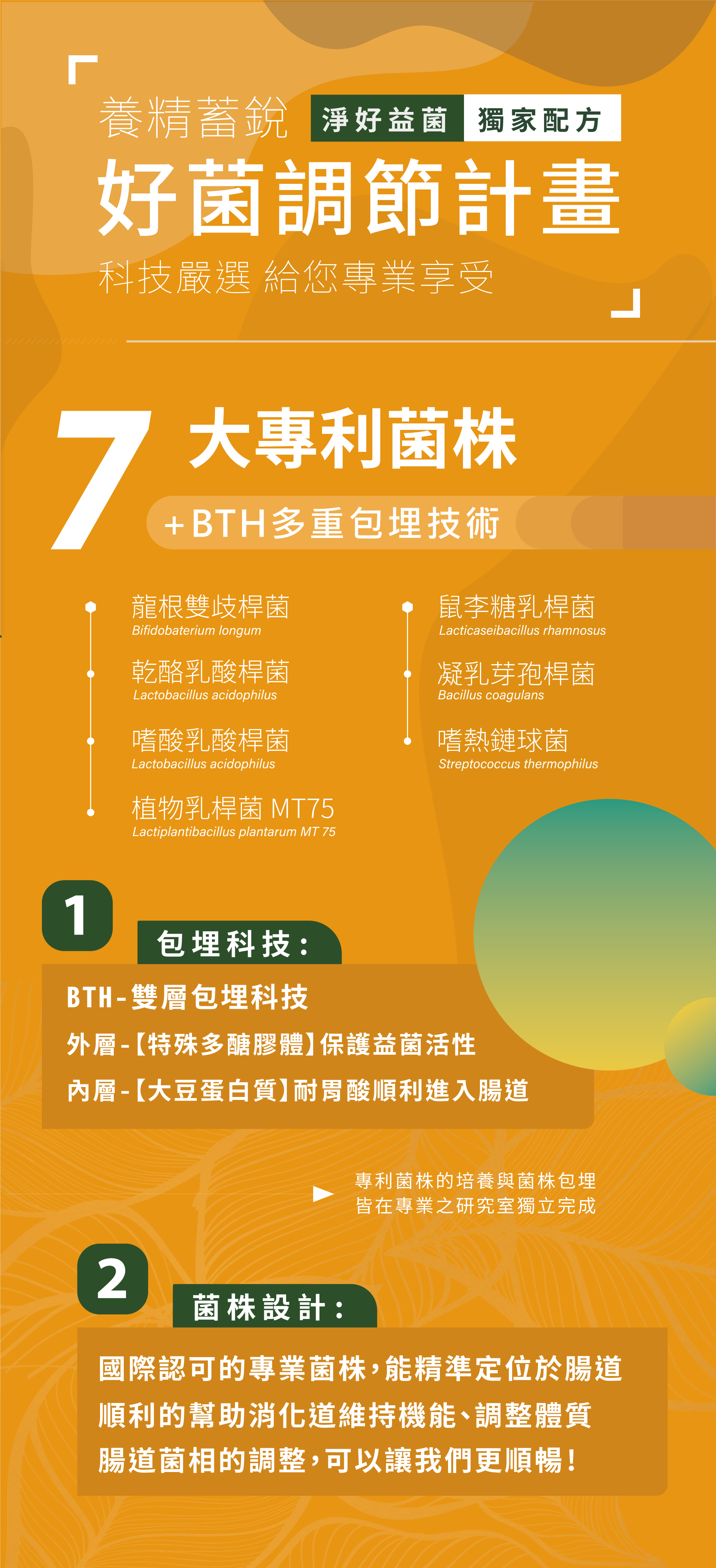 Lactobacillus acidophilus 嗜酸乳桿菌、Bifidobacterium longum 長雙歧桿菌、Lactobacillus casei 乾酪乳桿