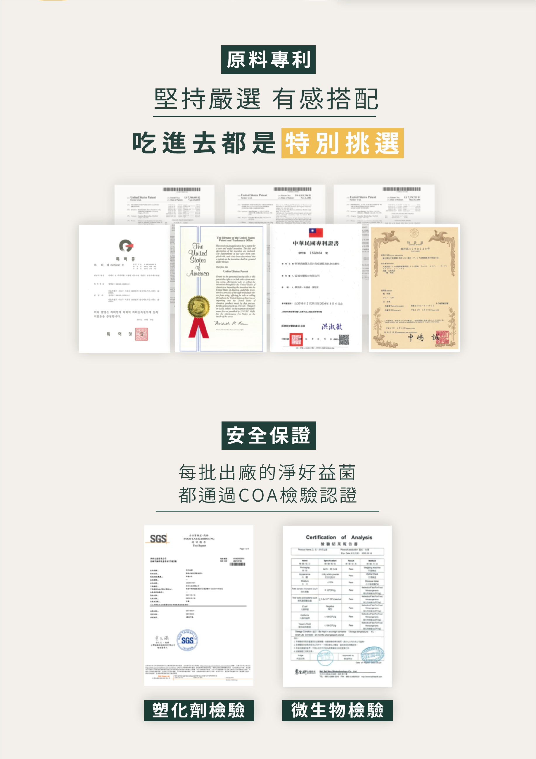 🔸 3 大安心日常:通過SGS多項檢驗、每批次出廠通過COA檢測、多國專利