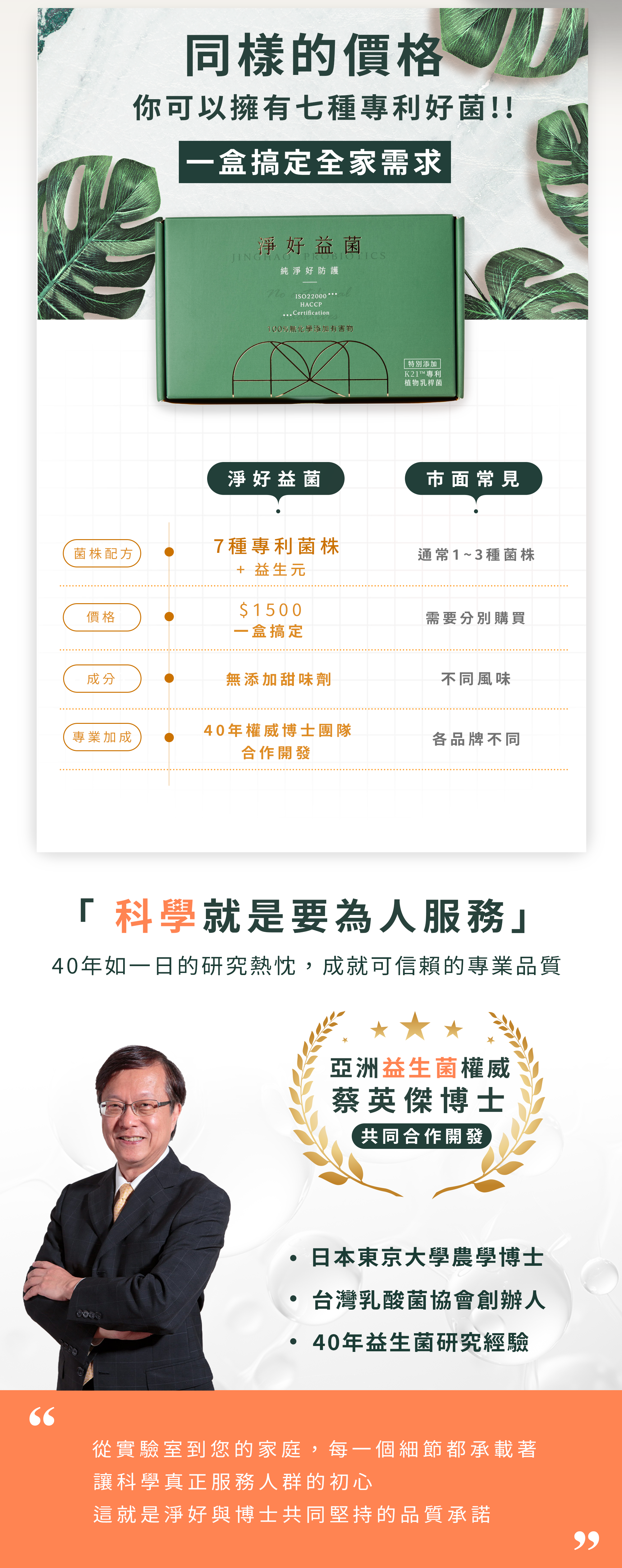 淨好益菌是以七大菌協同為核心的日常營養補充品,